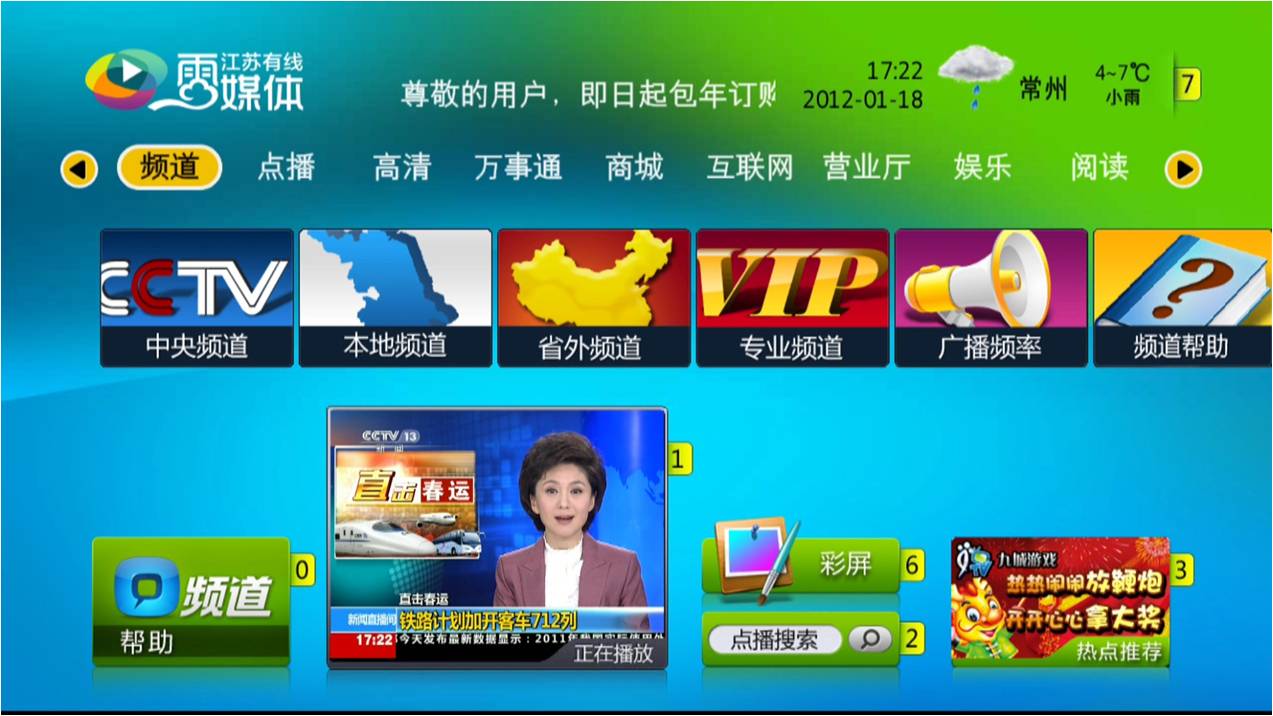 互動數(shù)字電視除具有普通數(shù)字電視的全部功能外,還可以實現(xiàn)實時點播、時移電視、頻道回看、播放控制等主動收看功能,使用戶可以在任何時間通過遙控器選擇自己想看的節(jié)目,節(jié)目播放也可以自行控制,交互數(shù)字電視還將與銀行、券商、教育等部門合作推出水電繳費、實時證券交易、電視購物、遠程教育及上網(wǎng)等全新增值業(yè)務(wù)。