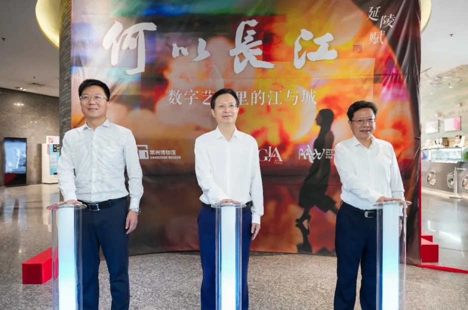 9月19日,“何以長江?延陵賦——數(shù)字藝術(shù)里的江與城”正式在常州博物館一樓特展廳啟幕。本次數(shù)字展由中共常州市委宣傳部、常州市文化廣電和旅游局主辦,常州博物館、江蘇有線數(shù)據(jù)公司、江蘇有線常州分公司等單位承辦。江蘇有線黨委書記、董事長莊傳偉,黨委副書記、總經(jīng)理楊青峰,常州市委常委、宣傳部部長陳志良,江蘇有線黨委委員、總會計師王展,黨委委員、副總經(jīng)理施茜出席啟動儀式。
