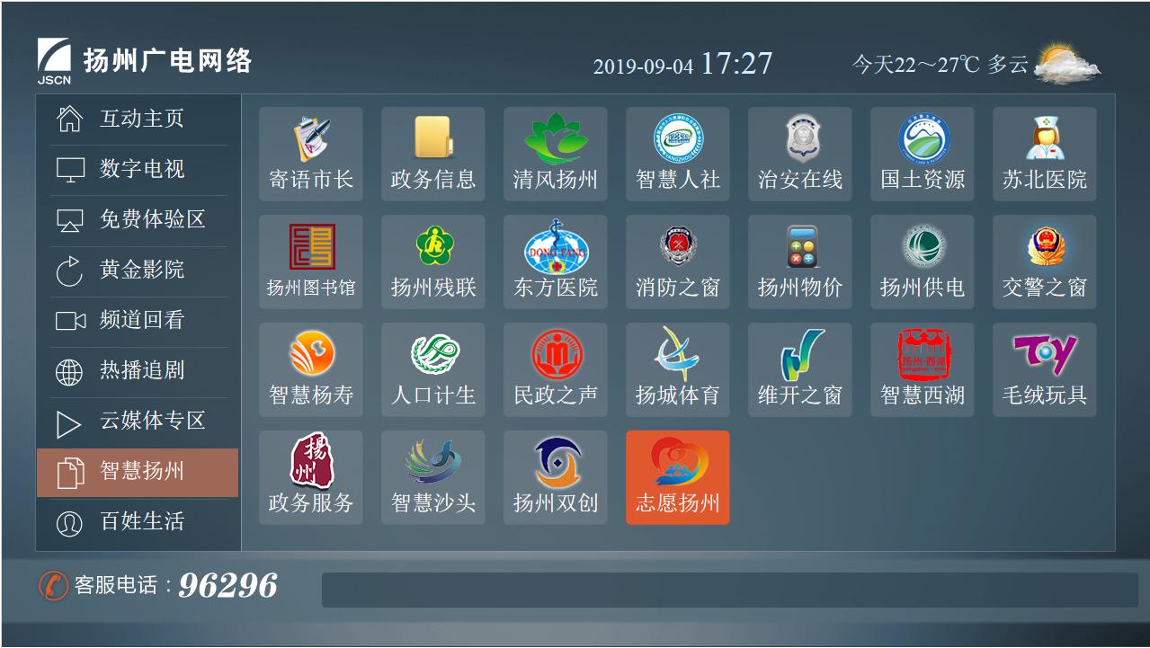 江蘇有線揚(yáng)州分公司為進(jìn)一步服務(wù)用戶、服務(wù)群眾、服務(wù)黨委政府、服務(wù)地方經(jīng)濟(jì)和社會(huì)發(fā)展,通過整合原有資源,著力打造“智慧揚(yáng)州”電視互動(dòng)平臺(tái)集群,依托廣電高清互動(dòng)強(qiáng)大的平臺(tái)能力,圍繞客戶需求,為政府、企業(yè)等集團(tuán)用戶量身定制集視頻、資訊、互動(dòng)為一體的個(gè)性化綜合門戶服務(wù),建設(shè)智能化、信息化的電視信息發(fā)布渠道,滿足集團(tuán)用戶宣傳推廣與向特定人群提供專享服務(wù)的需求。在數(shù)字電視高清互動(dòng)主頁(yè)開辟“智慧揚(yáng)州”專區(qū),目前已經(jīng)形成了寄語市長(zhǎng)、揚(yáng)州就業(yè)、國(guó)土資源、蘇北醫(yī)院、應(yīng)急時(shí)空、消防之窗、揚(yáng)州物價(jià)、揚(yáng)州供電、揚(yáng)城體育、民政之聲、清風(fēng)揚(yáng)州、電視圖書館等20余個(gè)“智慧揚(yáng)州”電視互動(dòng)平臺(tái)集群,覆蓋政務(wù)、民生、醫(yī)療、文化等領(lǐng)域,服務(wù)地方公用事業(yè),形成特色新業(yè)態(tài)。