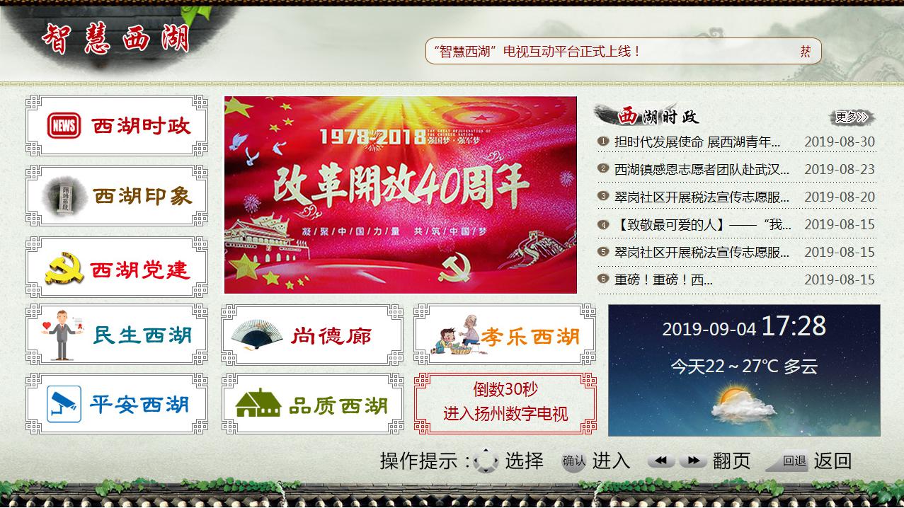 公司助力“智慧揚(yáng)州”建設(shè),著力發(fā)展“智慧鄉(xiāng)鎮(zhèn)”,目前已形成以“智慧楊壽”、“智慧西湖”、“智慧沙頭”為代表的“智慧鄉(xiāng)鎮(zhèn)”電視互動(dòng)平臺(tái)體系。以“智慧西湖”電視互動(dòng)平臺(tái)為例,平臺(tái)通過整合西湖鎮(zhèn)各類信息資源,以圖文信息與視頻節(jié)目相結(jié)合的方法,將鎮(zhèn)政府工作動(dòng)態(tài)、政策法規(guī)、各類活動(dòng)信息推送到西湖鎮(zhèn)居民家中,最終實(shí)現(xiàn)信息資源的共享。項(xiàng)目主要有三大特點(diǎn):一是高效實(shí)現(xiàn)基層信息傳遞“最后一公里”,西湖鎮(zhèn)居民打開互動(dòng)機(jī)頂盒即出現(xiàn)“智慧西湖”界面,與傳統(tǒng)媒體相比,開機(jī)推送模式使平臺(tái)信息推送到達(dá)率更高;二是有效推進(jìn)西湖鎮(zhèn)“群防群治”工作開展,“平安西湖”監(jiān)控平臺(tái)已在西湖鎮(zhèn)部分小區(qū)以及學(xué)校、廣場(chǎng)、公園等主要路段安裝實(shí)時(shí)監(jiān)控,西湖鎮(zhèn)居民在家即可觀看實(shí)時(shí)監(jiān)控畫面,還支持回放功能;三是有效推進(jìn)全鎮(zhèn)現(xiàn)代公共文化服務(wù)體系建設(shè),加快高清村建設(shè)。該平臺(tái)對(duì)于完善西湖鎮(zhèn)公共服務(wù)體系,打通宣傳服務(wù)“最后一公里”,增強(qiáng)鎮(zhèn)黨委、政府宣傳力和影響力,具有重要的意義。