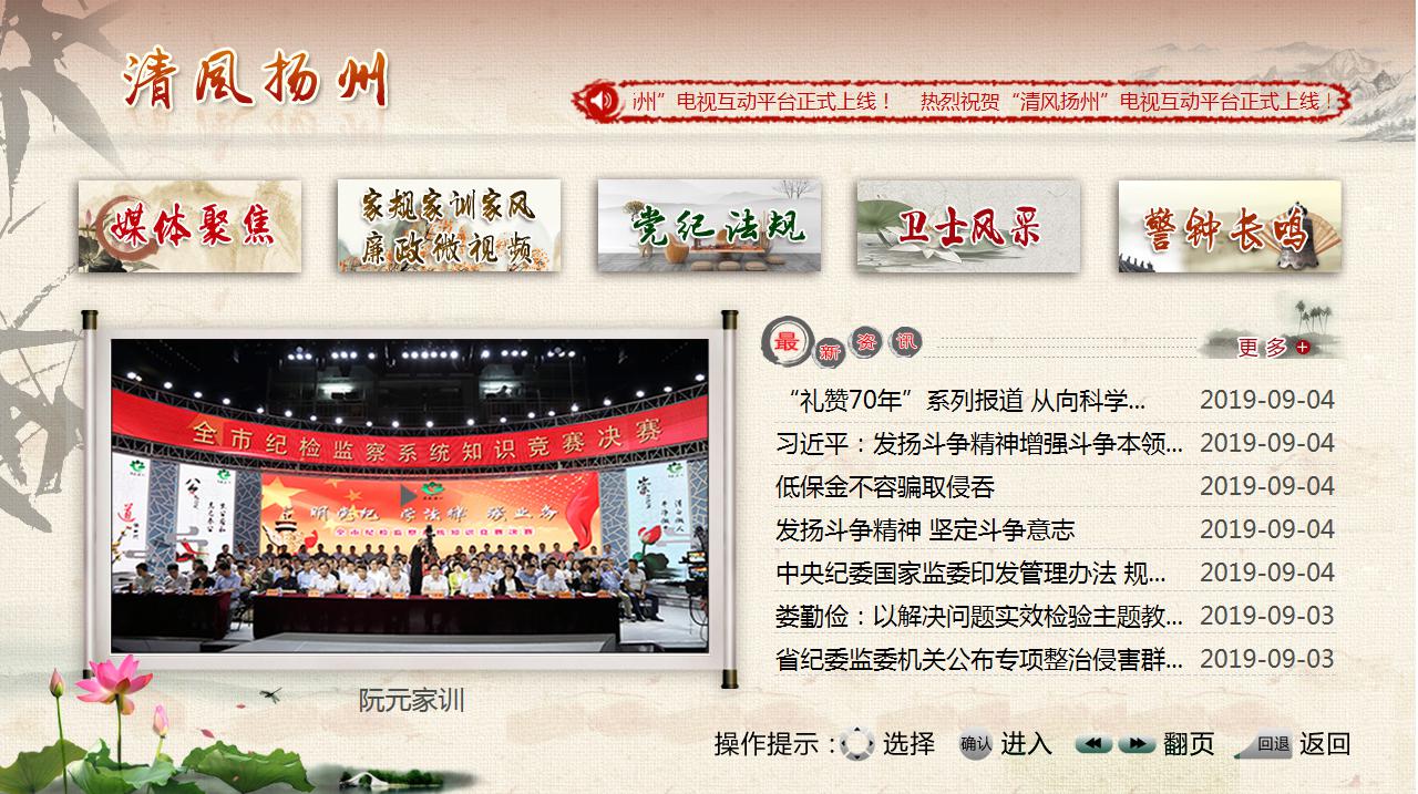 公司與市紀(jì)委緊密合作,共同開創(chuàng)了“清風(fēng)揚(yáng)州”電視互動(dòng)平臺(tái),通過生動(dòng)的圖文、視頻宣傳形式,為市委黨風(fēng)廉政建設(shè)提供了新的宣傳陣地。